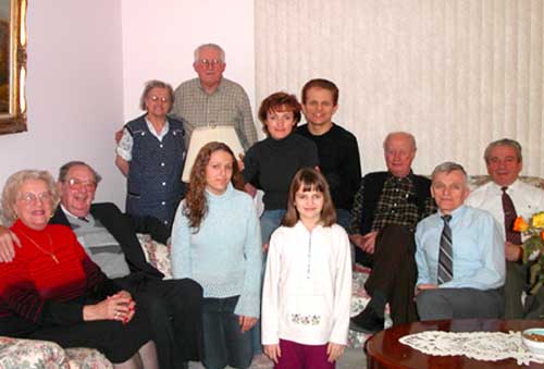 Szabó Istvánék otthonában, balról: Kish Ernőék, Zágoni Rezsőék, Szabó Istvánék, Drescher Lajos, Herjeczki Géza és Kulcsár Sándor. |